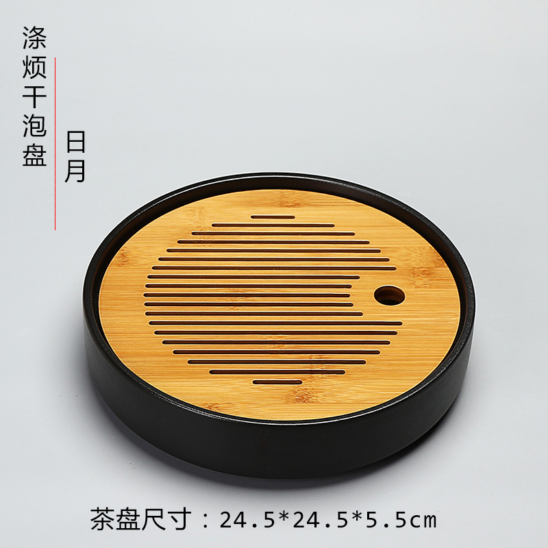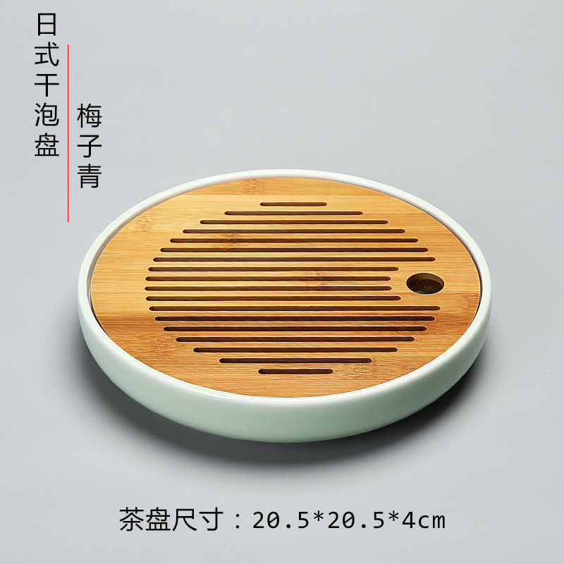 Ceramic Japanese Tea Tray Round Size Bamboo Mini Water Storage Tea Sea Dry Brewing Table Tray Kung Fu Tea Set