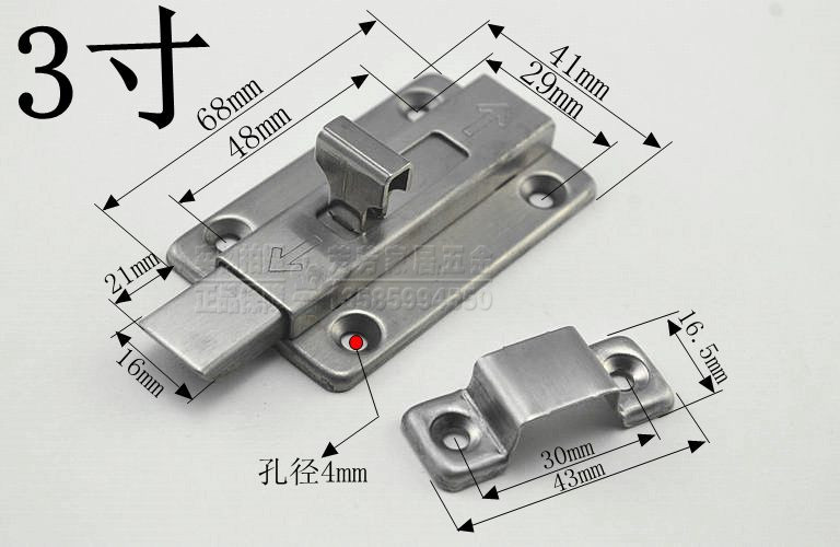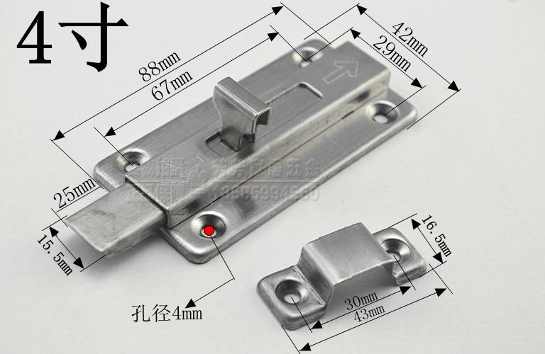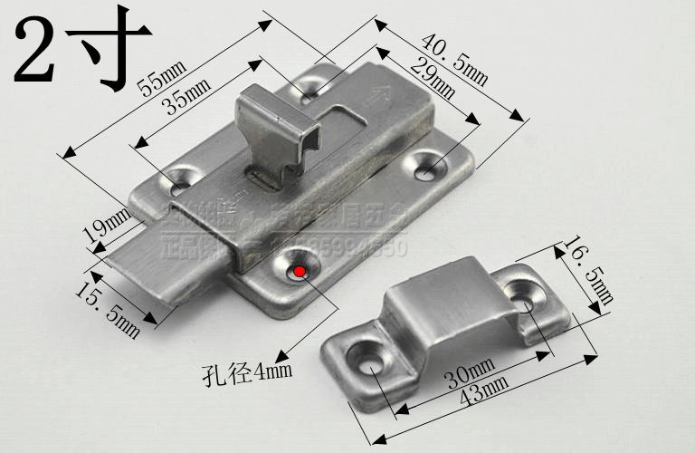 Stainless steel pins thickened 2-inch 3-inch dressing room door buttoned door bolt left and right bolt lock anti-theft wooden door bolt lock