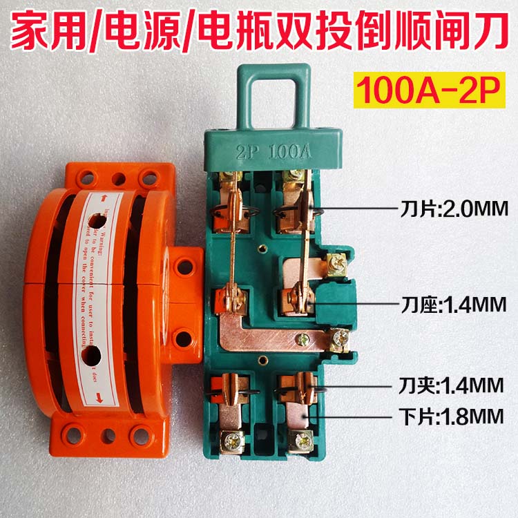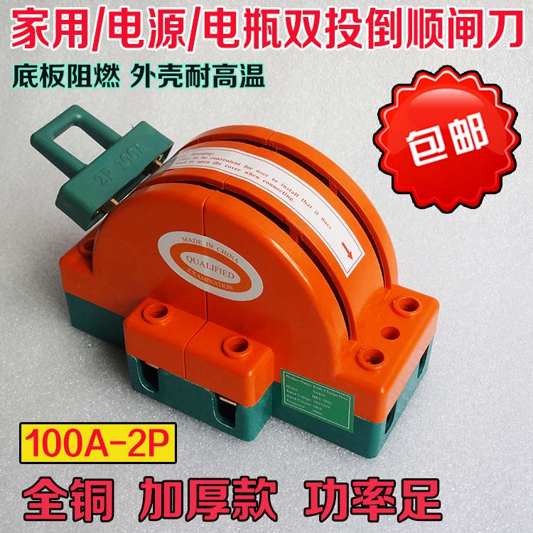 Single-phase home electric vehicle two-way dual-throw electric load isolation inverted conversion brake knife switch 220v 2P 100A