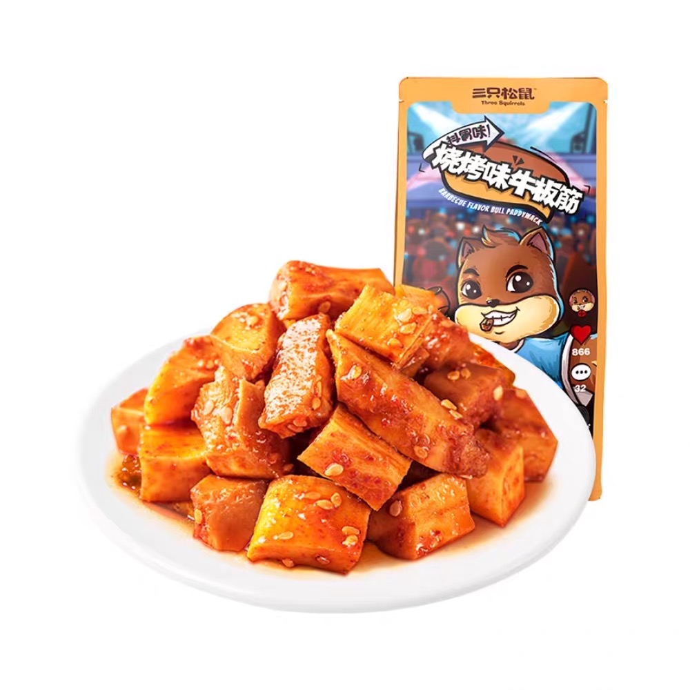 Three Squirrels Beef Tendon 120gX2 Bags Spicy Flavor Barbecue Flavor Beef Tendon Braised Beef Tendon Casual Snacks