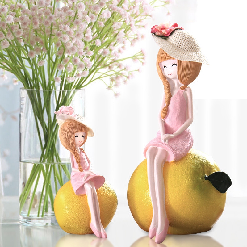 Grapefruit, small grapefruit large apple large coffee hat girl (carrying girl) blue skirt (carrying girl) watermelon large light gray straw hat girl black hat bag girl orange dress