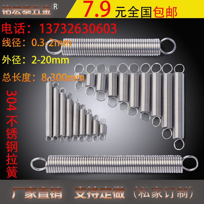 Stainless steel 304 small pull spring Tension stretch hook spring Bicycle saw aluminum machine display rack Oven pull door spring