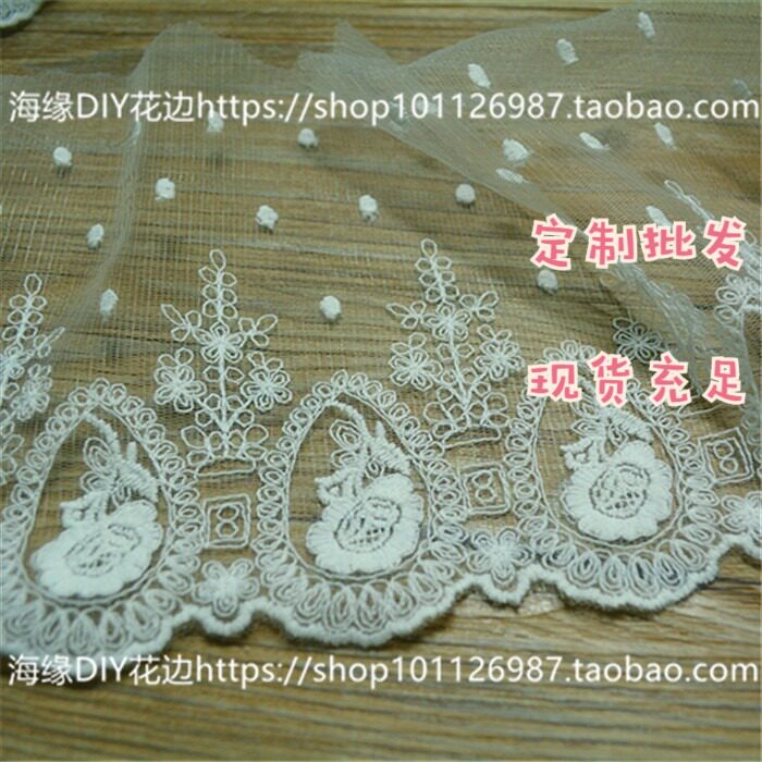 Off-white cotton thread mesh embroidery rose lace lace handmade diy clothing lace accessories decoration width 16cm