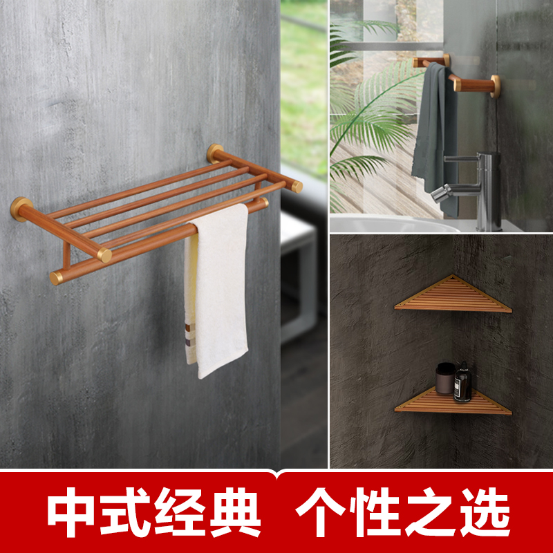 Common wood bathroom Wooden double towel rack Powder room bath towel rack Bathroom pendant set Bathroom corner shelf