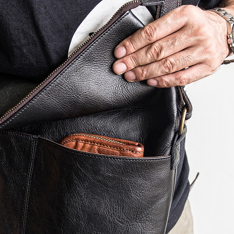 Buried without rotten headlining Bull Leather Skew Satchel Men Genuine Leather Fold Pack Casual Retro Plant Tannic Leather National Tide Mailbag B85