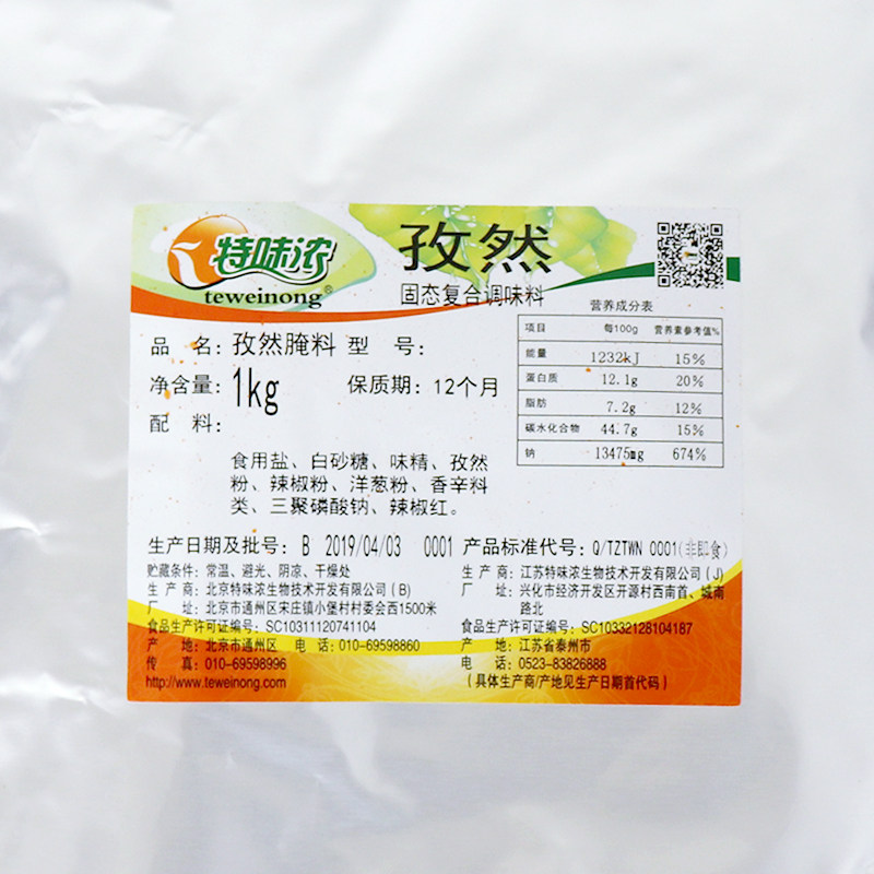 Aluminum foil bag special flavor thick cumin marinade barbecue wings Orleans Shish kebab marinade franchise store special 1kg