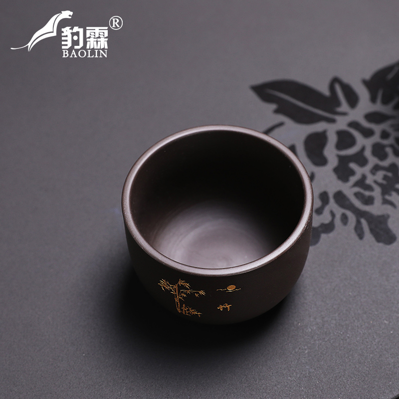 Single teacup-Purple Sand single teacup-Anti-mouth to successful single teacup-Fukong cup single cup-Black sand glaze 01 diesel fired manual thread 60ml antimouth cup-Yahblack