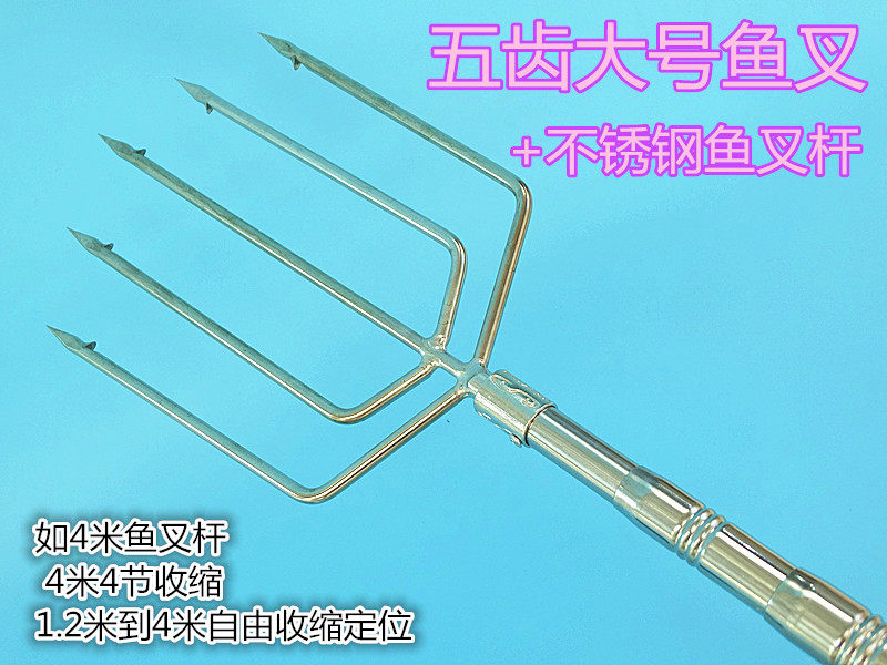 Stainless steel retractable rod large five-tooth harpoon head flying fork rod large inverted thorn harpoon rod fishing gear accessories