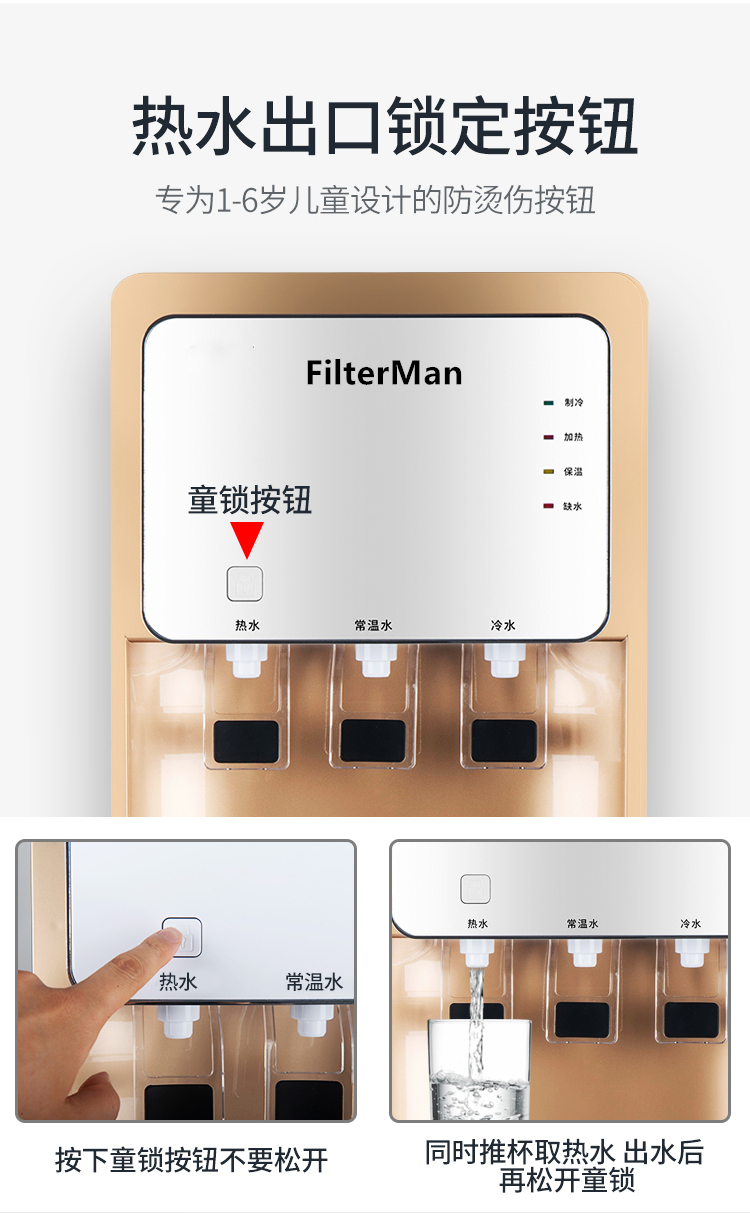 Water dispenser Vertical compressor Refrigeration ice warm new bottom bucket Energy saving and anti-dry burning Home office