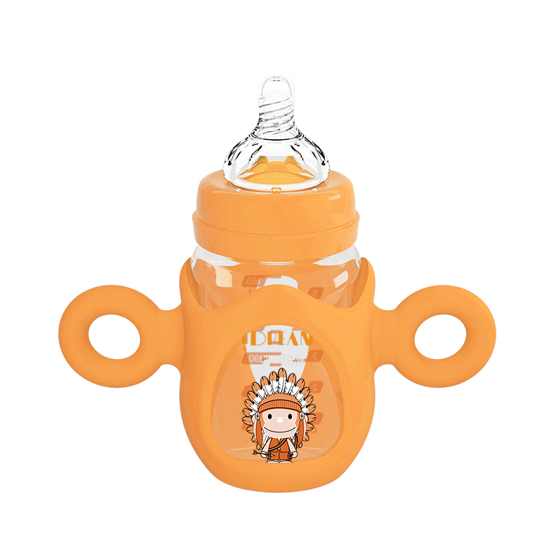 Bending body silica gel with hand bottle wide calibre glass bottle silicone gel jacket anti-fall with handle newborn protective sleeve