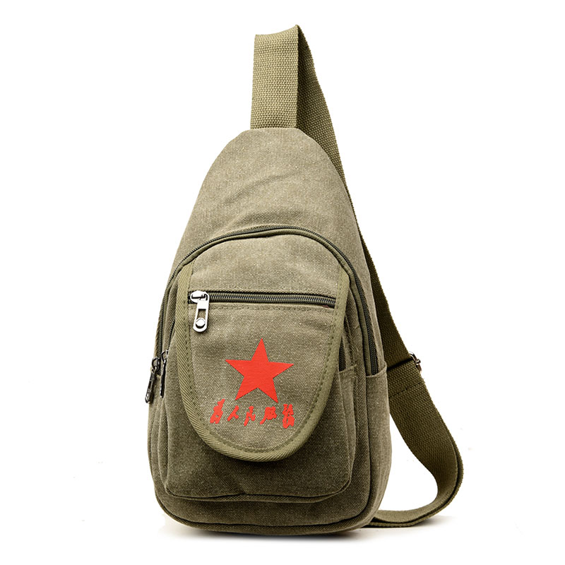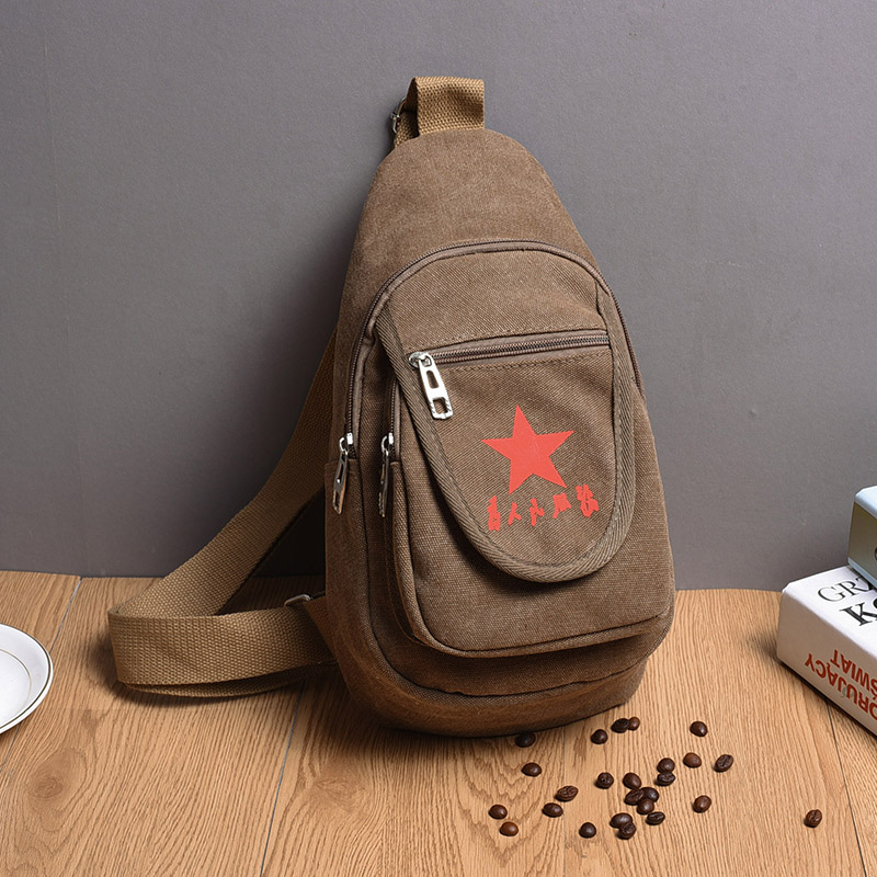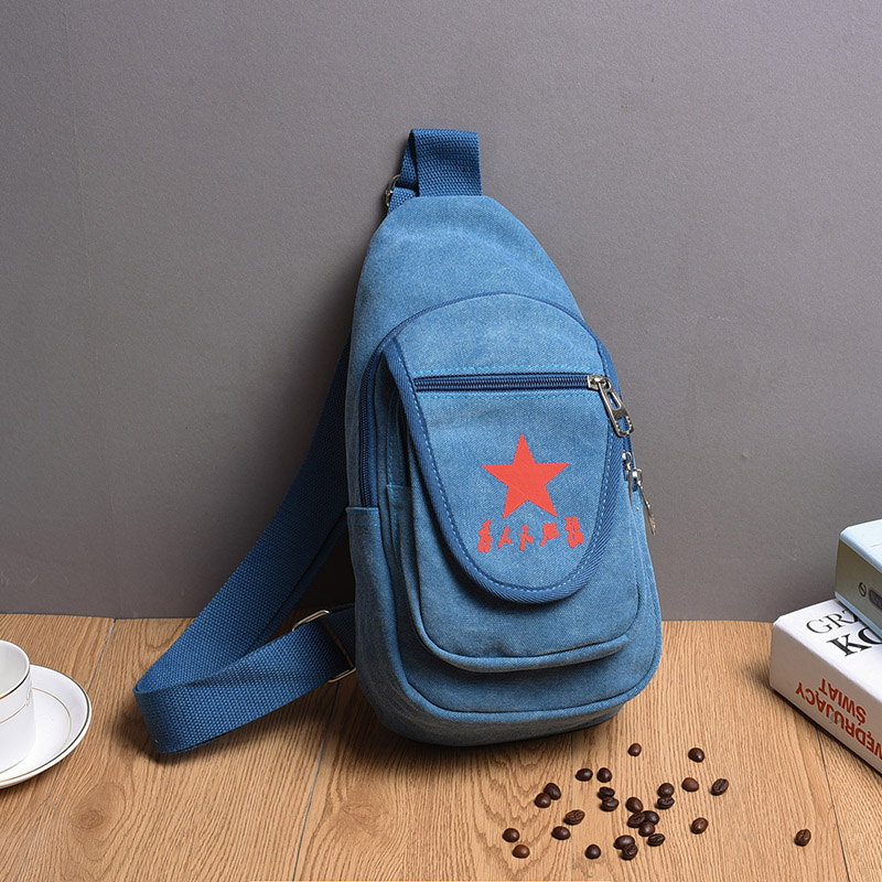 New Men and Women Canvas Chest Bag Five Star Pattern Bag Retro Canvas Small Bag Serving the People Printed Fashion Bag