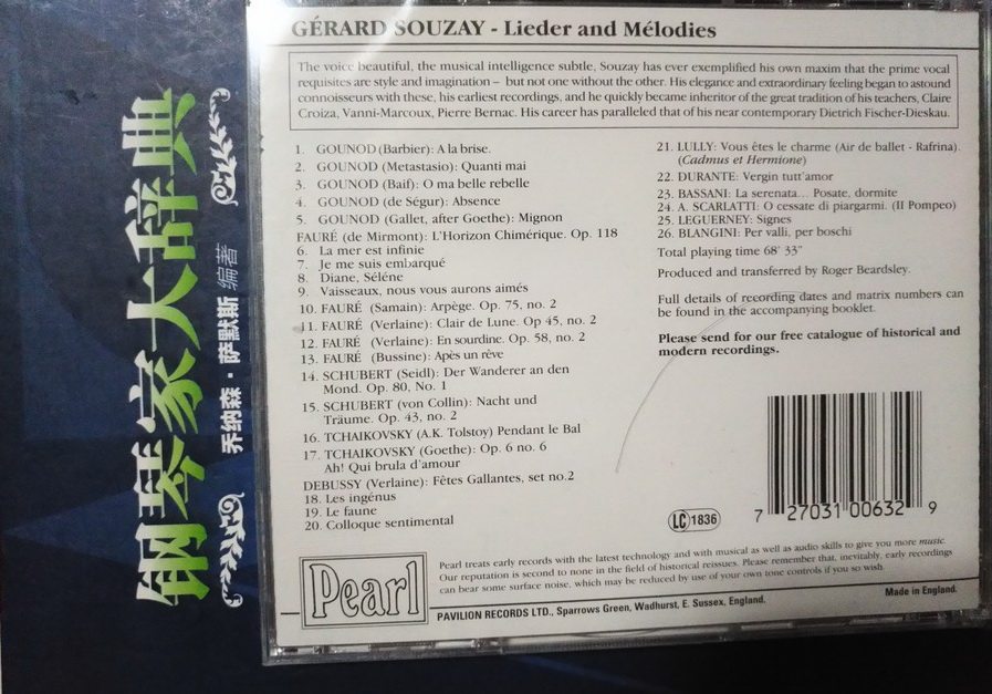 Pearl-GEM0063 Gerard Souzay-Lieder and Melodies