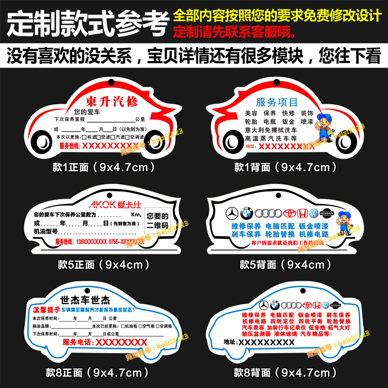 Car Maintenance Tips Card Listed Hangtag Repair Shop For Oil Personality Mileage Record Reminder of Custom General