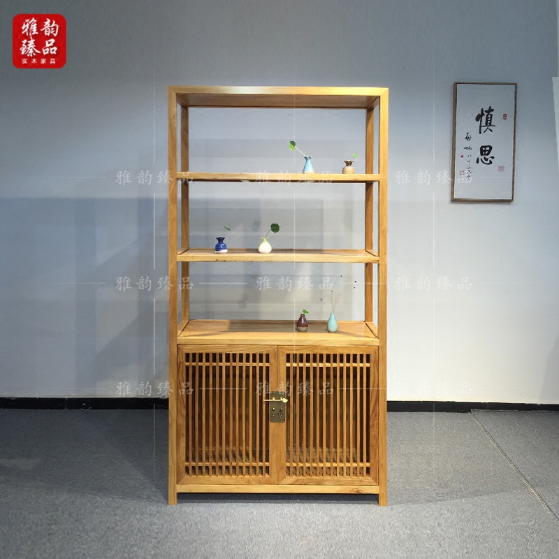 Old elm modern minimalist Chinese log storage ladder cabinet rack paint-free environmental protection solid wood high and low bookshelf combination