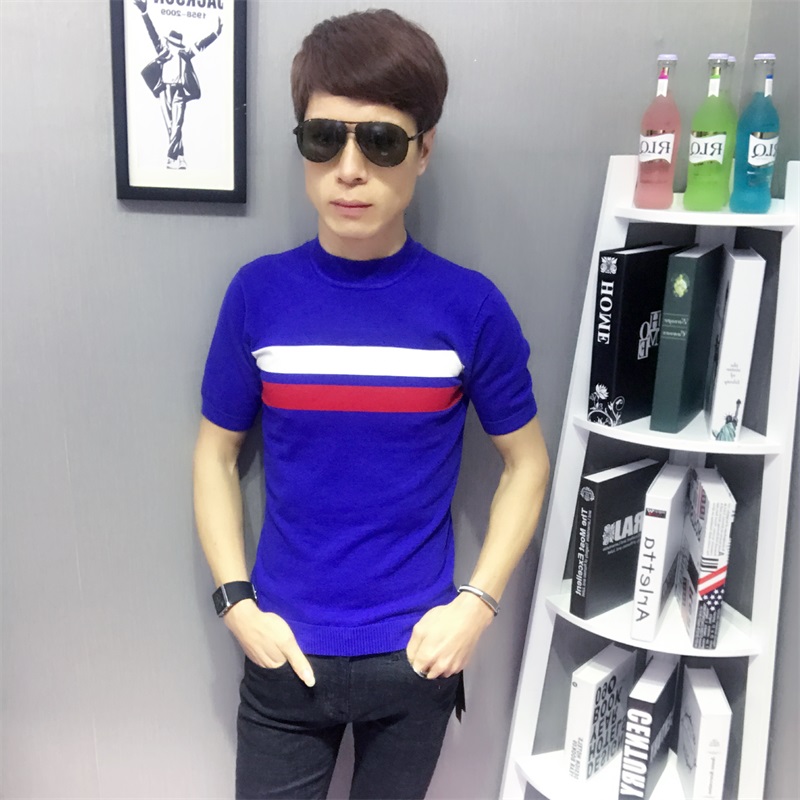 New Short Sleeve T-Shirt Men and Korean Edition Pure Line Blade Young High-Level Half-sleeved Sweater