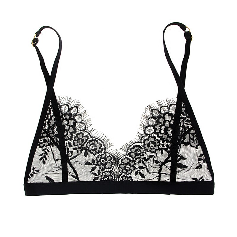Woman's Secret Autumn Big Breast Sexy Eyelash Bra Bra No Steel Ring Triangle Cup Black Comfortable Lace Lingerie