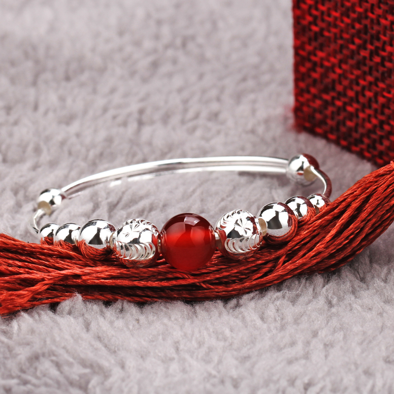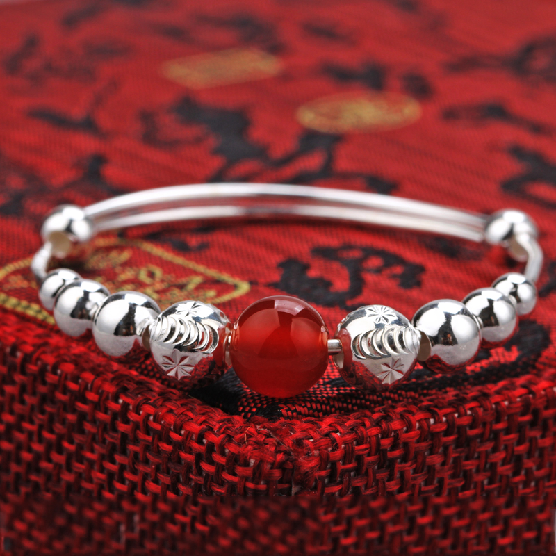 Transporter beads Agate Baby silver Bracelet 990 Sterling Silver Bracelet for men and women full moon child baby child gift silver jewelry