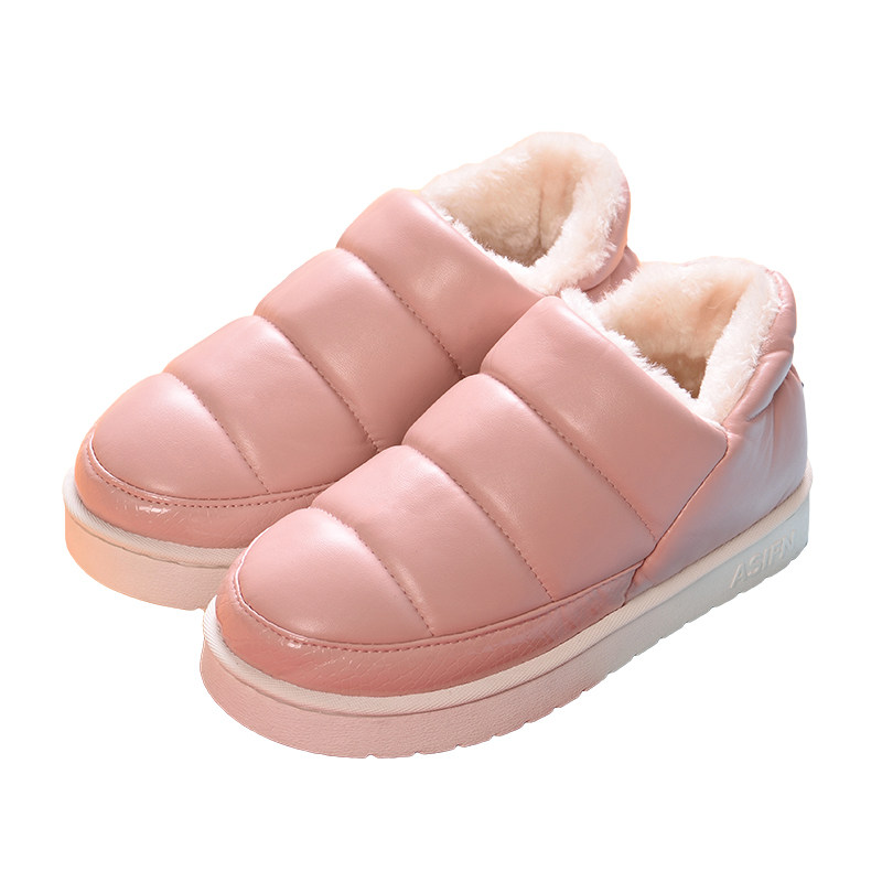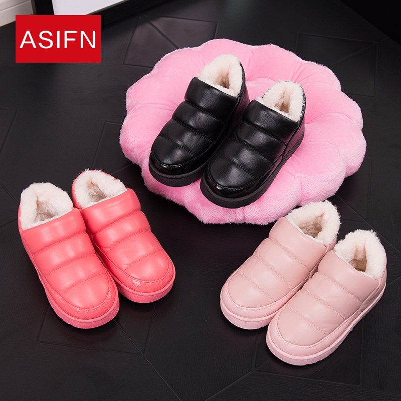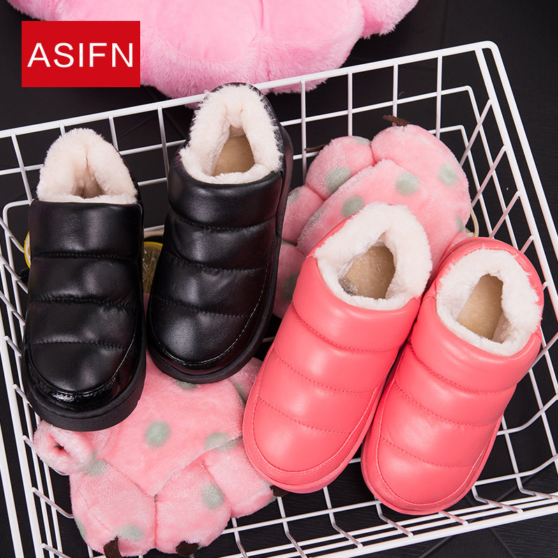 Winter children's home slippers winter PU leather girl shoes boy baby waterproof non-slip warm cotton slippers bag heel