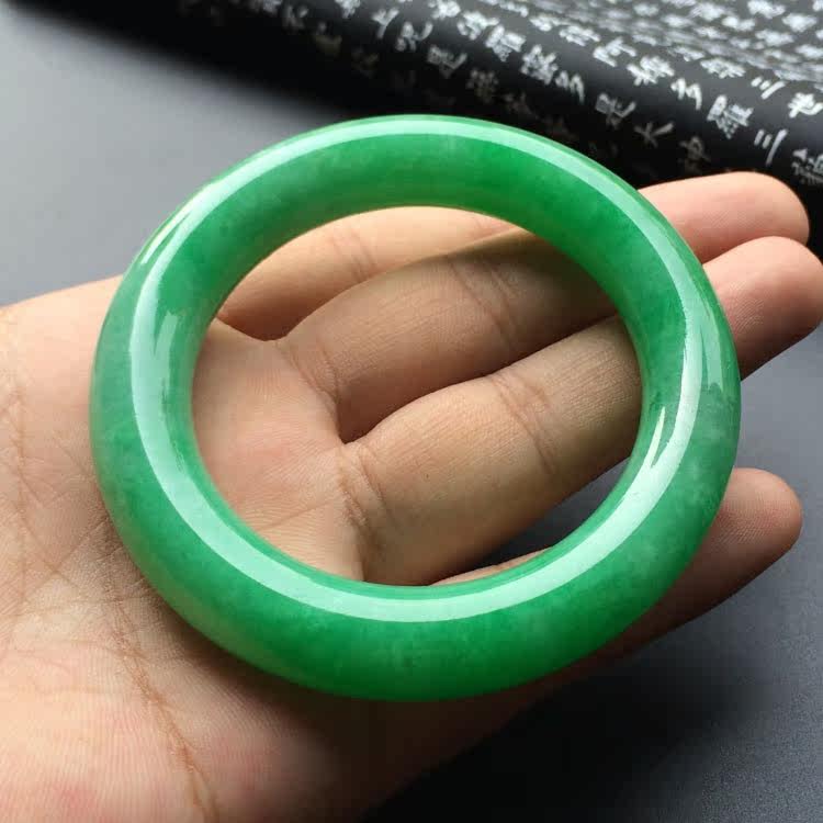 Emperor Green Natural Burmese Laokeng Jade Bracelet Round Bar Spicy Green Full Green Flower Jade Bracelet Jade Bracelet