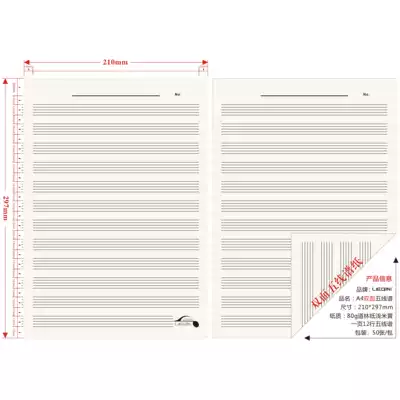 Staff A4 music staff special paper single-sided sheet music book 50 sheets pack 210*297mm single-sided sheet