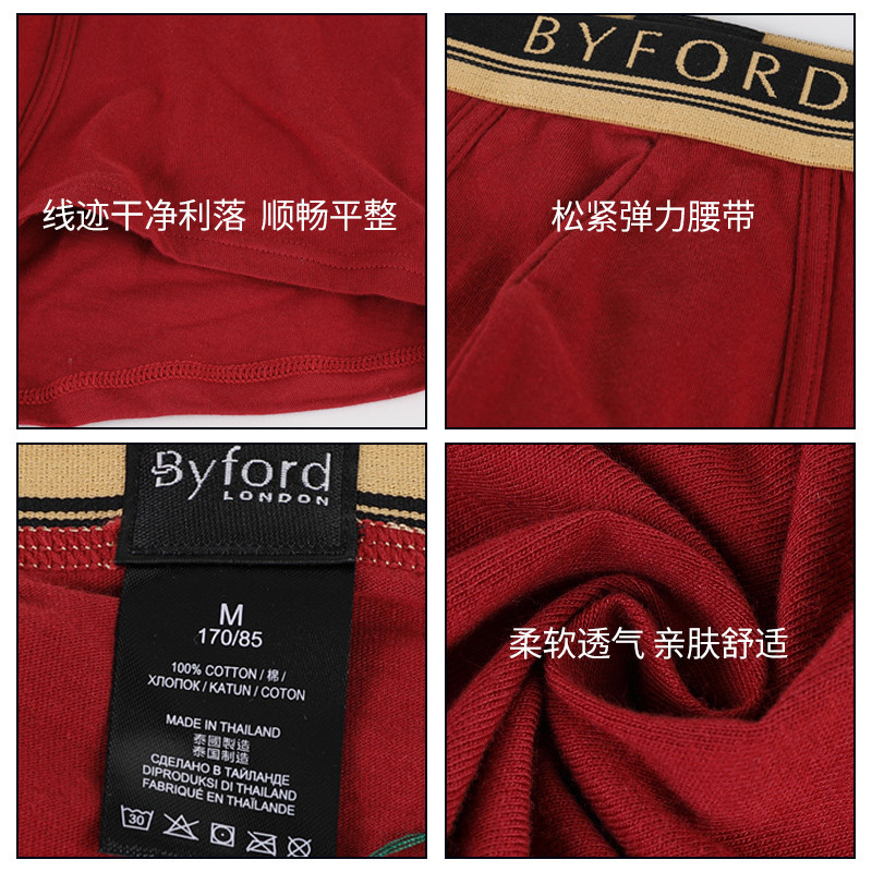 Byford Budrich men's cotton red Ben-year four-corner underpants Four-corner pants male MW38019