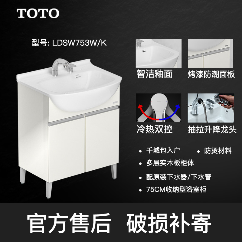 TOTO simple floor-to-ceiling bathroom cabinet combination LDSW753W moisture-proof wash basin Zhijie ceramic basin pull-out faucet