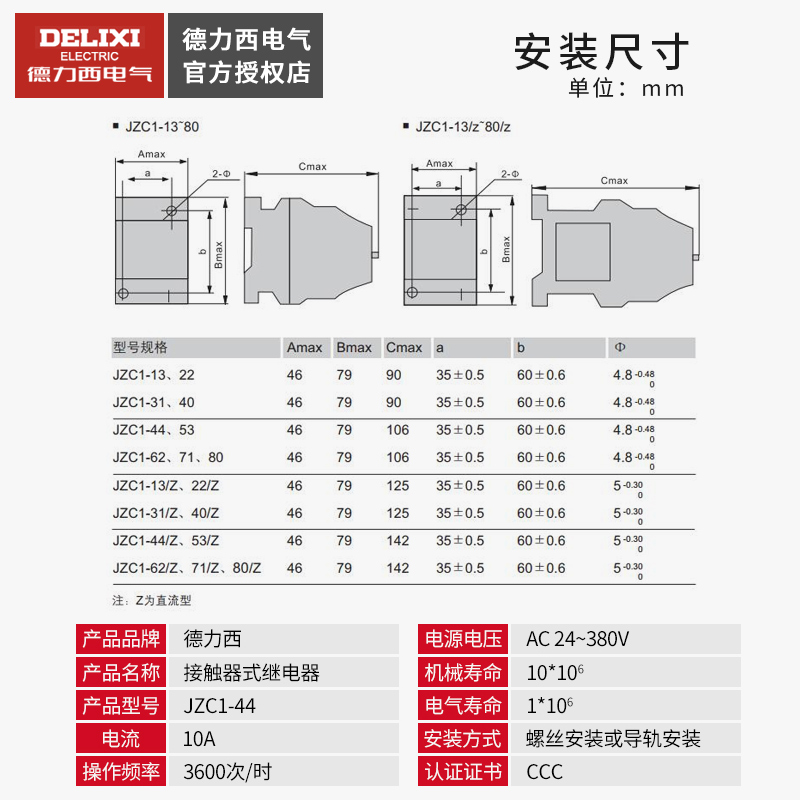 Delixi contact intermediate relay JZC1-44 53 62 71 80 copper coil 4 open 4 closed 3TH82