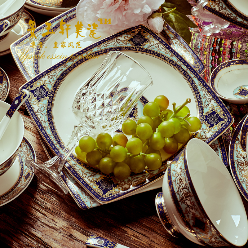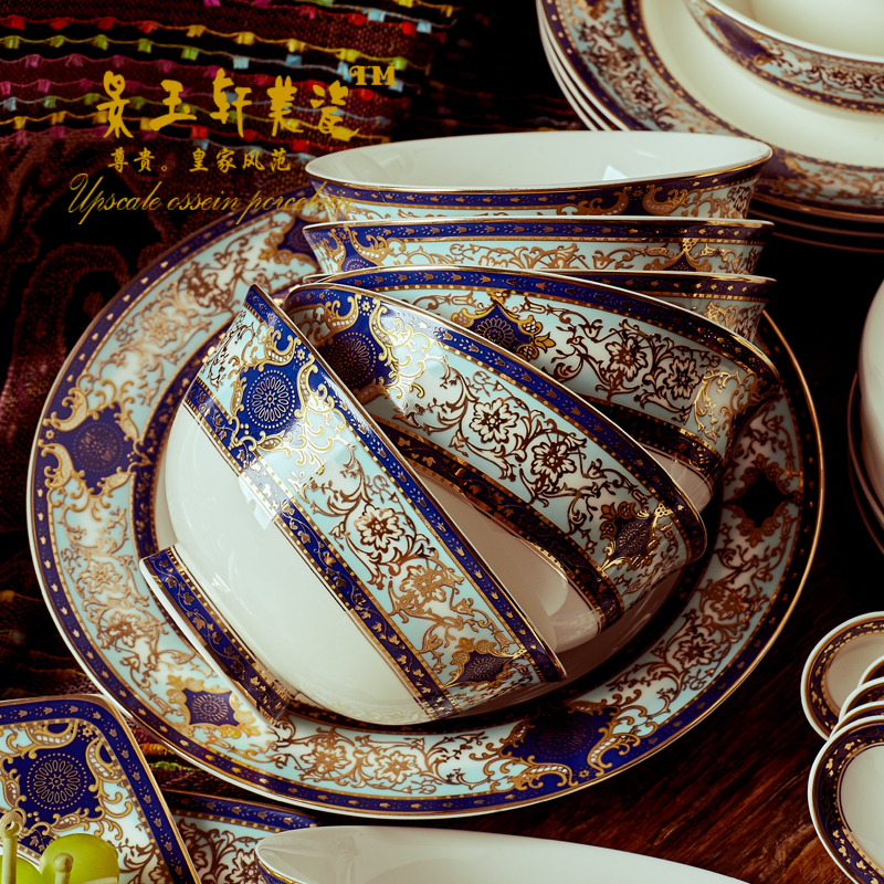 Upscale palace Ceramic Inform European-style Bone Porcelain Tableware Suit Bowl tray Dish Suit Home 60 Pieces Gift