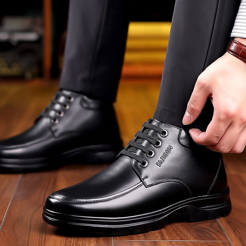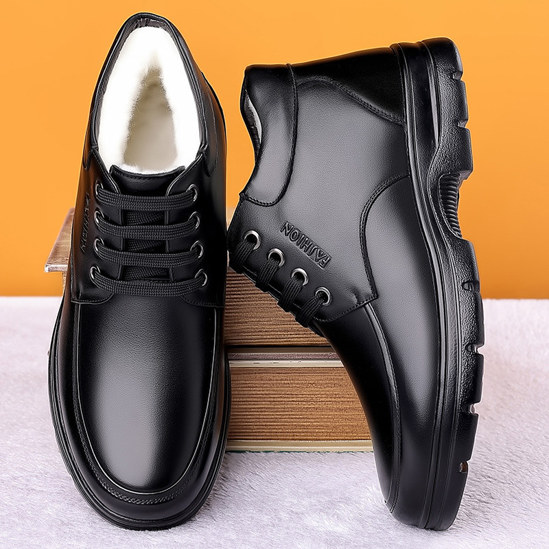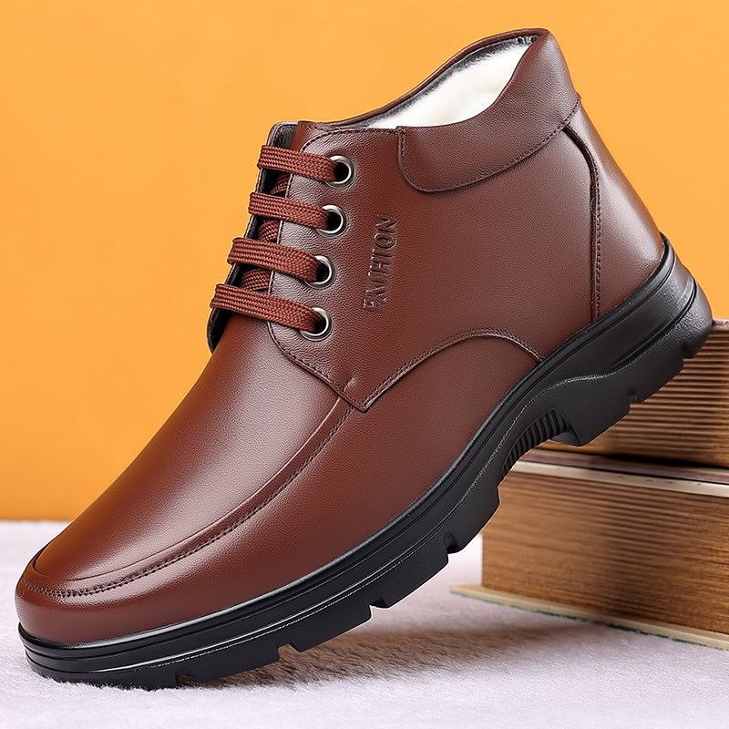 Cotton shoes men's winter warm plus velvet thick leather wool large size cotton leather shoes middle-aged and elderly father's father's shoes