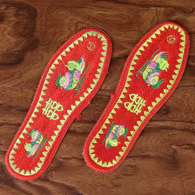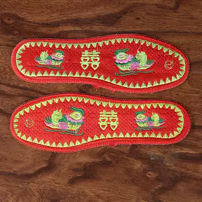 Wedding supplies for men and women red insoles dowry insoles cross-stitch flower sticky sole hand embroidered Mandarin duck insoles