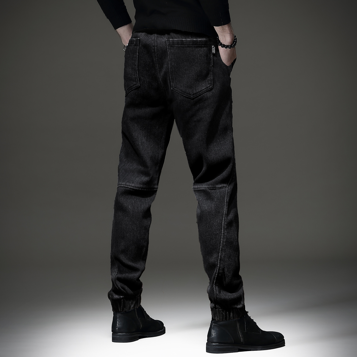 High-end Loose Tide Card Black Jeans Men's Fall New Bunch Foot Big Code Elastic Tooling Thick Casual Pants Man-Taobao