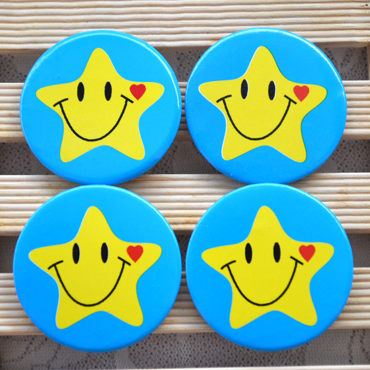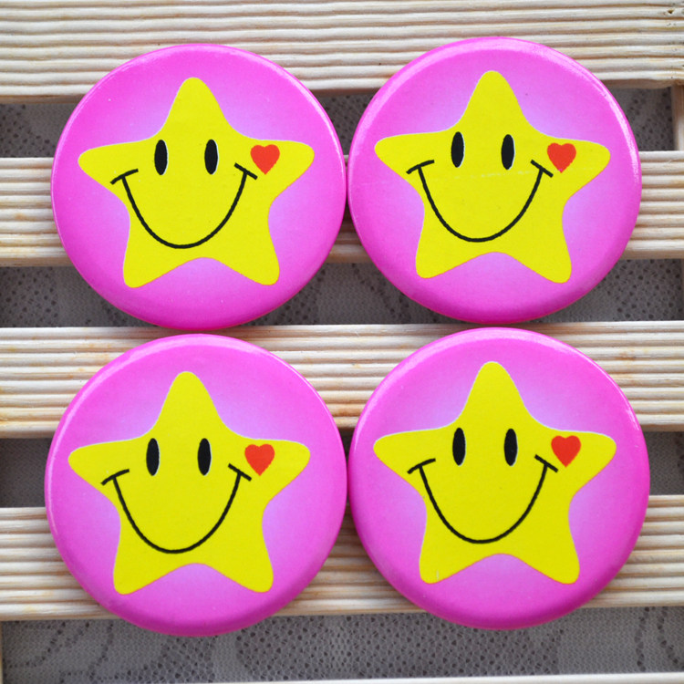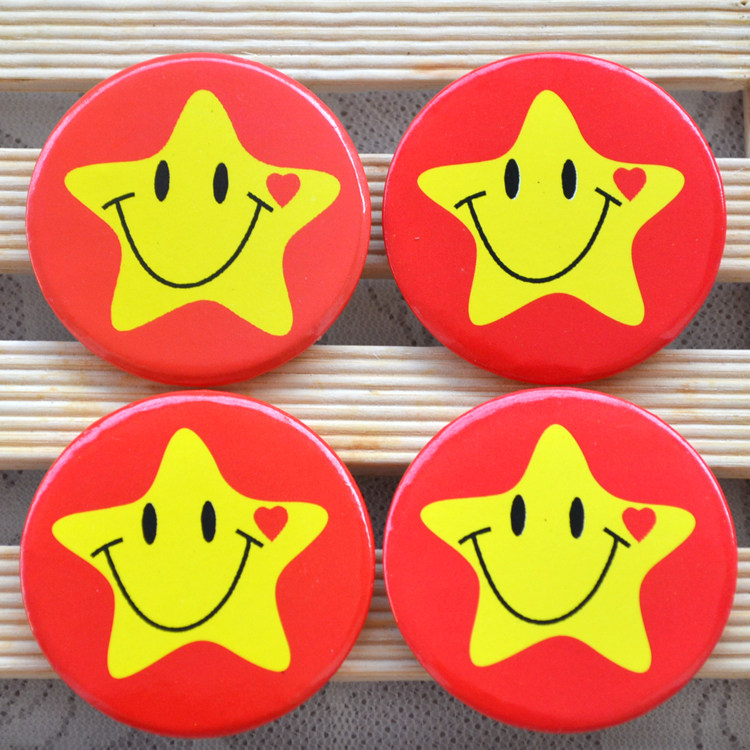 Smiley Face Brooch Pentagram Stars Smiling Face Chest Badge Cartoon Children Reward Chest Signs Big Red Pink Blue Multicolored