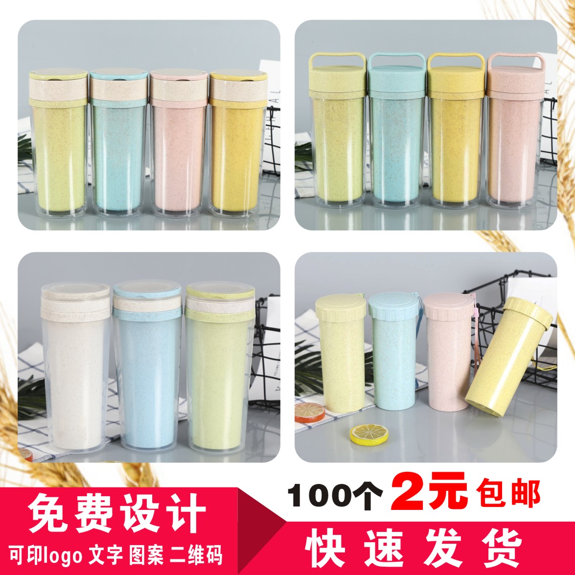 Custom advertising plastic cup wheat rod cup custom double cup transparent cup water cup accompanying cup manufacturer printed logo