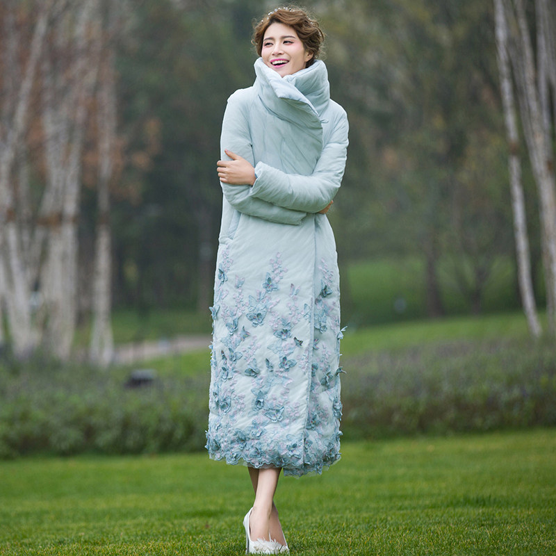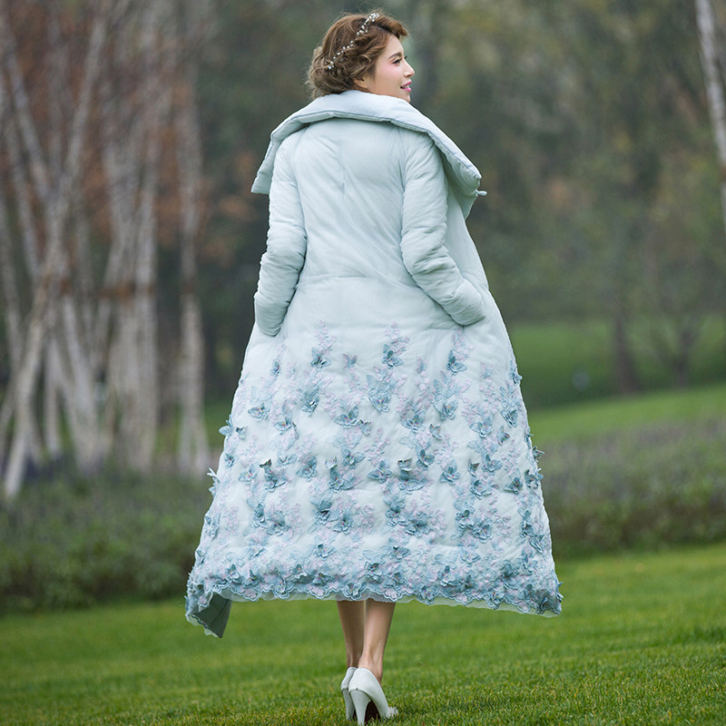 Princess 2021 new winter Han Version Down thickened with a long blue pie down suit
