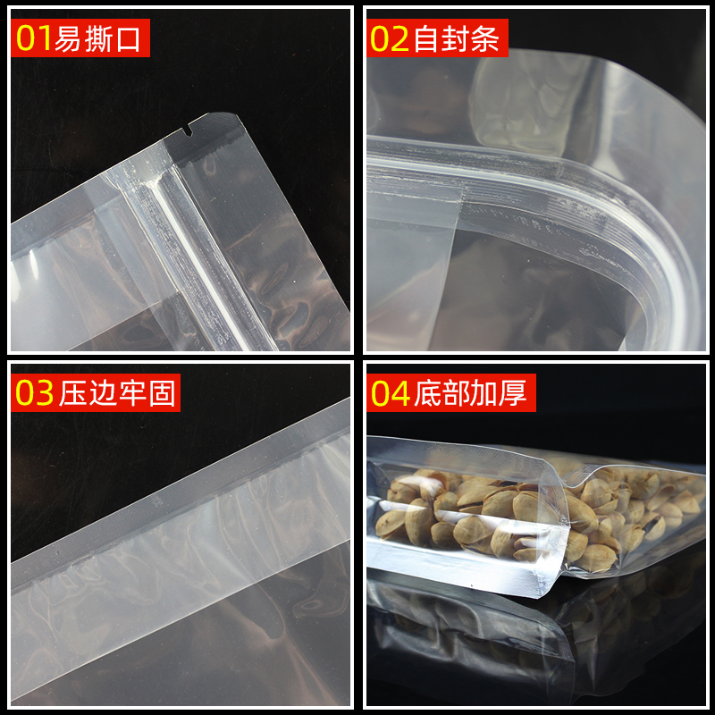 Transparent self-supporting self-sealing eight-side sealing organ bag transparent sealing sealing bag packaging food bag multiple options wholesale