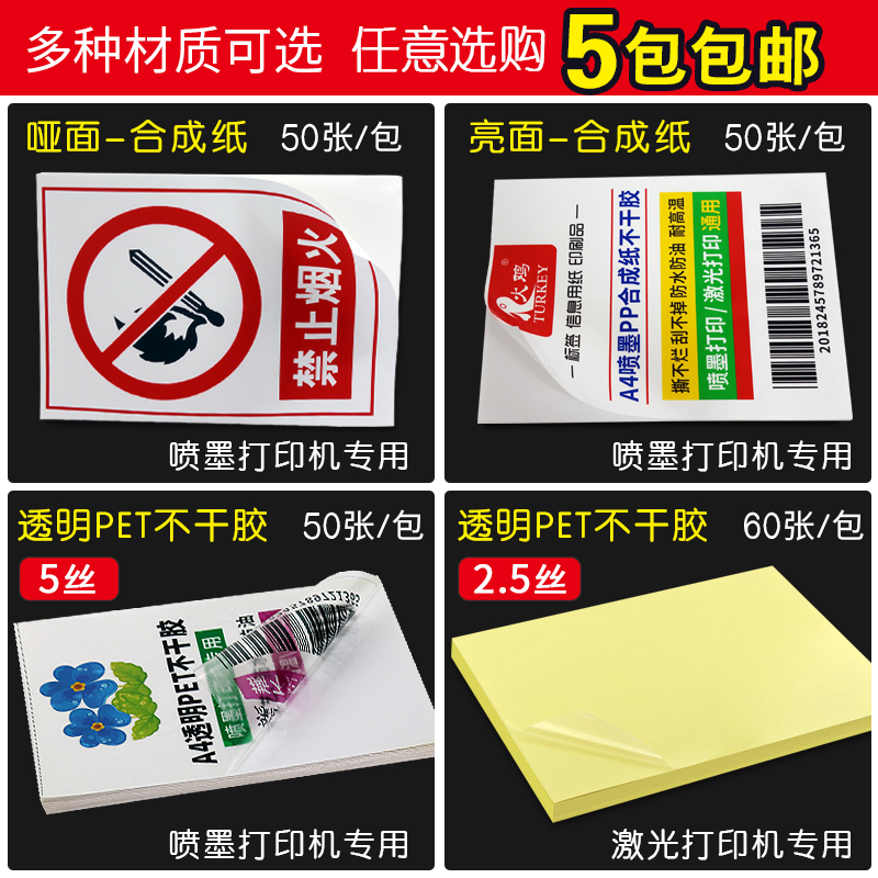 Inkjet sub-surface PP synthetic paper 50 sheets a pack of inkjet glossy PP synthetic paper 50 sheets a pack of inkjet 5 silk transparent film PET label 50 sheets a pack (translucent) (toner printing)Laser