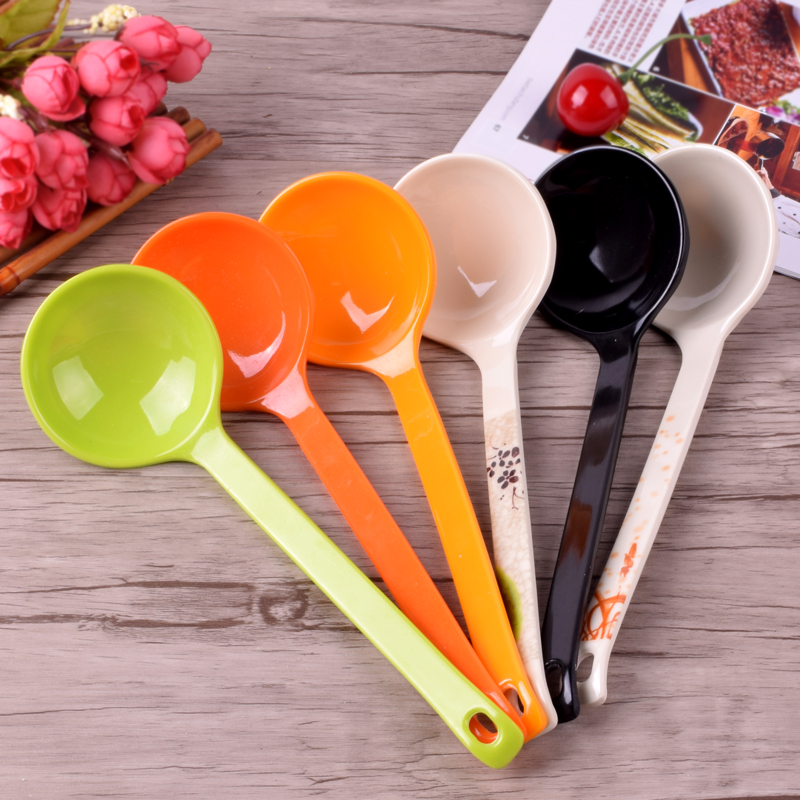 Color imitation porcelain turtle shell spoon tableware melamine long handle spoon ramen spoon cross bridge rice noodle spoon black plastic round soup spoon