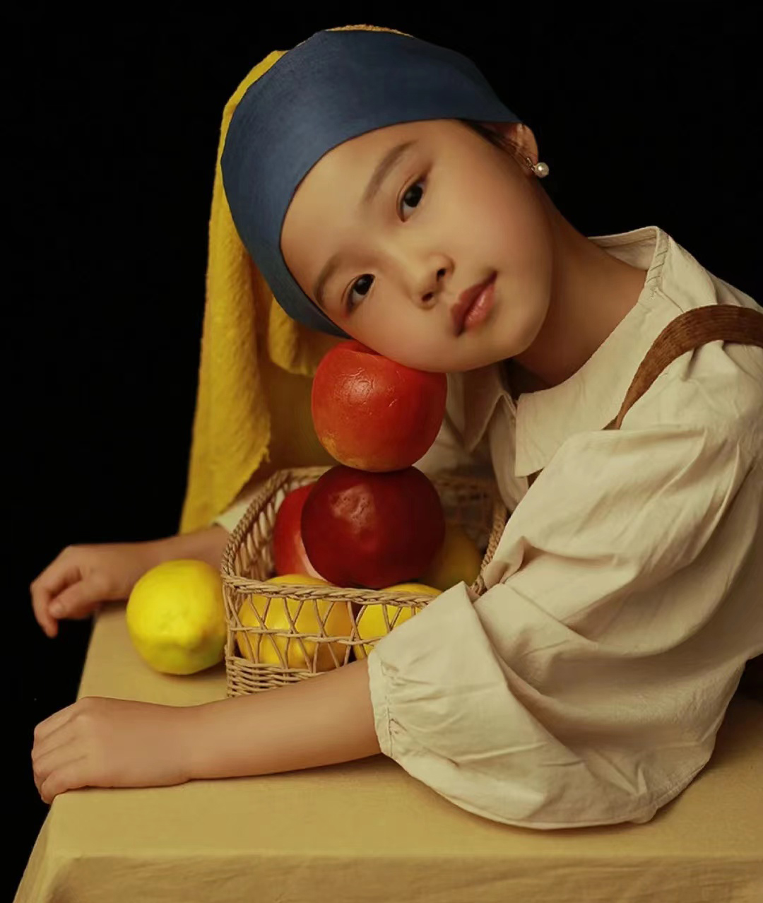 cos girl with pearl earrings suit turban hat hundred days one-year-old baby photo newborn photography props