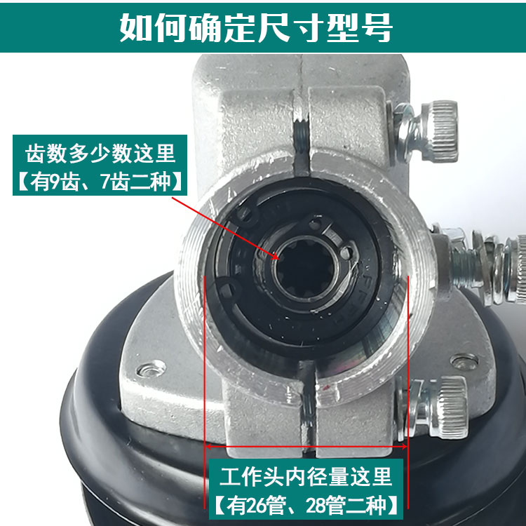 26 tubes and 9 teeth, double-ear working head with screws 26 tubes and 9 teeth, single-ear working head with screws, 28 tubes and 9 teeth, double-ear working heads with screws, 28 tubes and 9 teeth, single-ear working head with screws