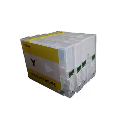 A set of 4-color empty ink cartridges, one ink cartridge with chip, no ink, color, one ink cartridge with chip, no ink black