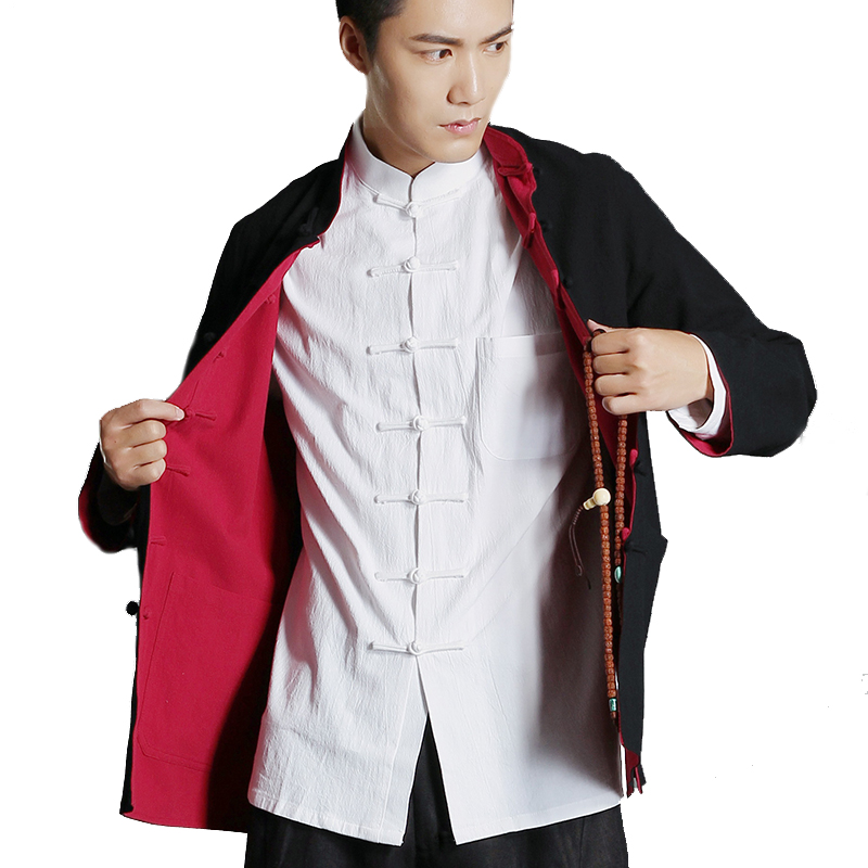 Two-piece set of Chinese style Tang suit for men plus fertilizer to increase Chinese-style clothing, layman's clothing, kung fu clothing, Chinese clothing, double-sided wear