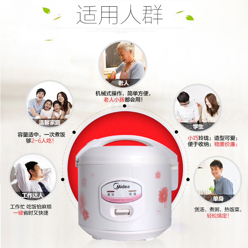 Midea mechanical electric rice cooker 4 liters large capacity household 3-5-6 electric rice cooker dormitory official flagship