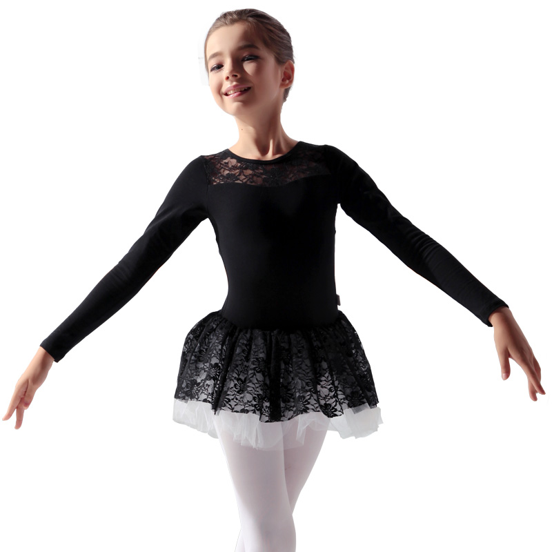 BaiUk Ballet Dance Children Lace Long Sleeves Mid Back Connected Body With Skirt Body Practice Service 117241008