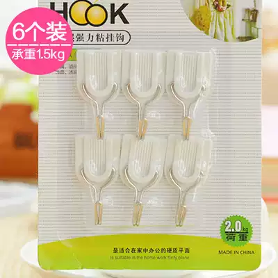 Rotatable strong adhesive hook 6 sets of kitchen bathroom wall-mounted clothes hat hanging clothes hook door rear nail-free no trace stick
