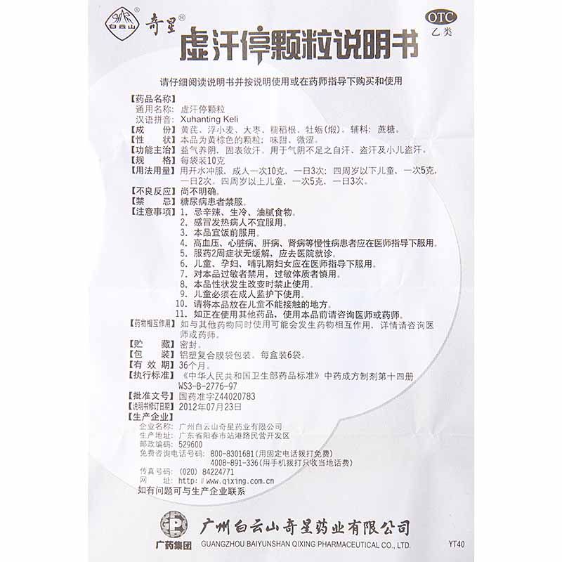 Qixing Deficiency Sweat Stopping Granules 6 bags of self-perspiration and dehydration for children with night sweat and antiperspirant for children with deficiency of qi and yin, hyperhidrosis of hands and feet