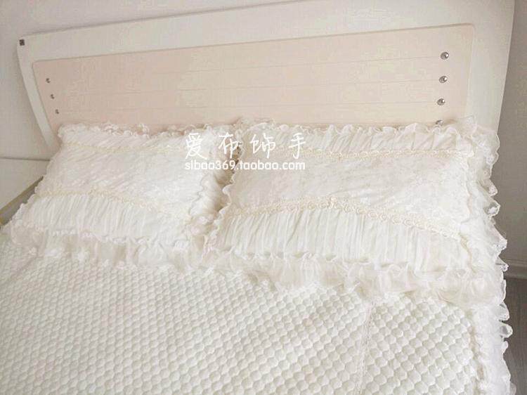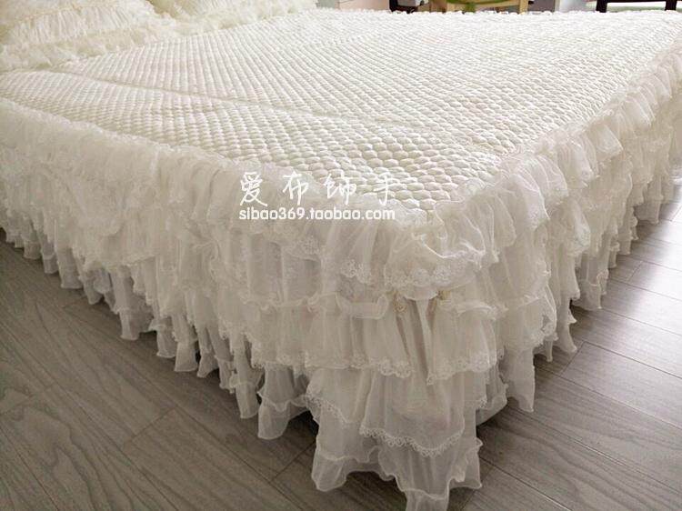Korean modern beauty Pure white yarn lace embroidered fabric bed cover bed skirt 1 5m1 8m quilted bedding