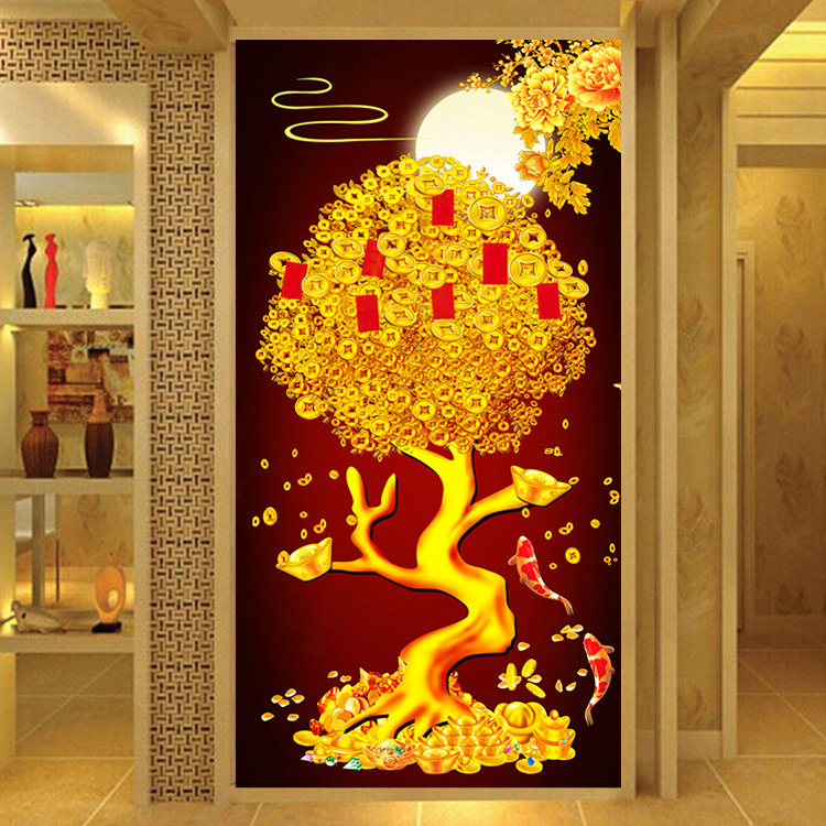 New 5d diamond painting full of diamonds embroidered money tree porch vertical version stickers diamond cross stitch rich tree living room brick and stone painting