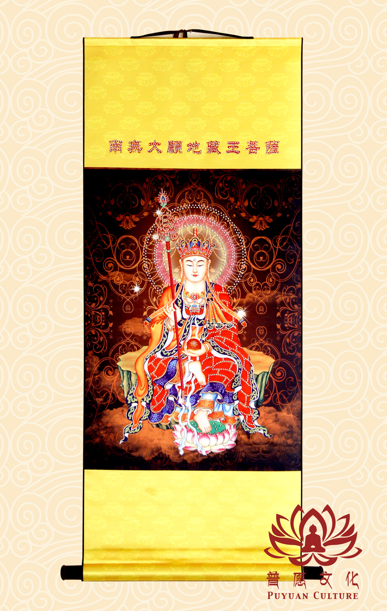 (Pwilling Culture) HD Solemn Buddhism Ground Tibetan King BodhisattBodhisattva inlaid with Scroll Buddha Statue to hang and stick to the Buddha Hall