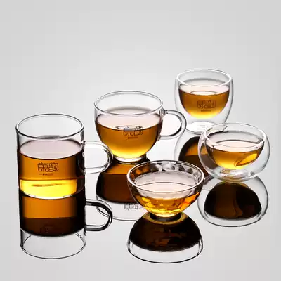 Thickened glass teacup with transparent high temperature resistant kung fu double hammer glass home 6 small set