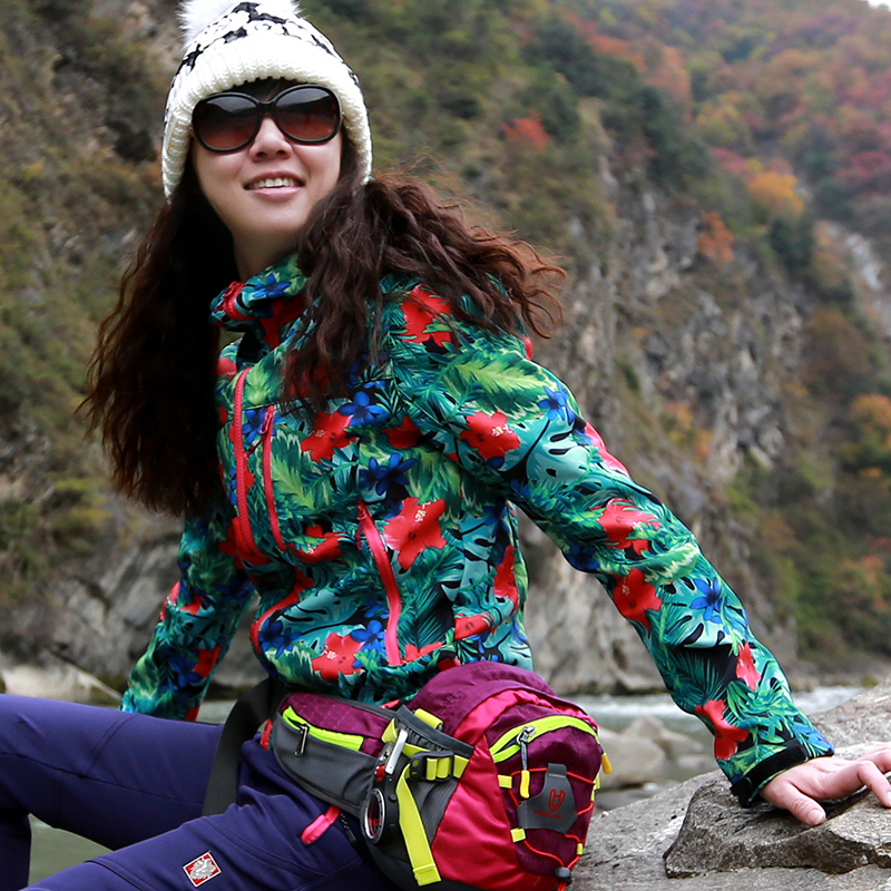 Naughty Outdoor Female soft shell clothing Body Printed Windproof Anti-Splash Water Mountaineering Hiking Suit for Cashmere Clothing